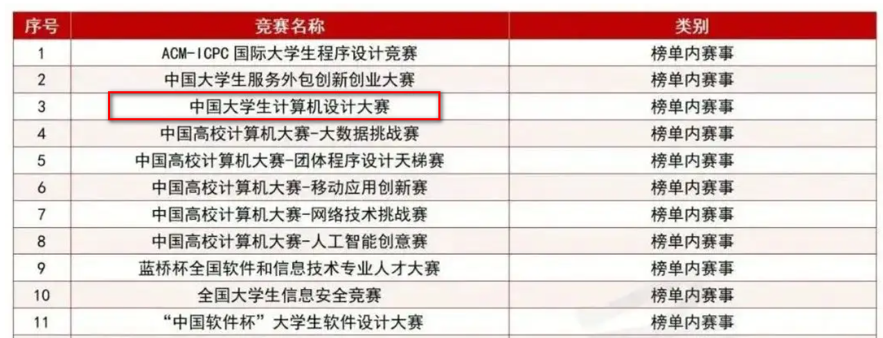 表 2 全国普通高校大学生计算机类竞赛研究报告4C位列第五
