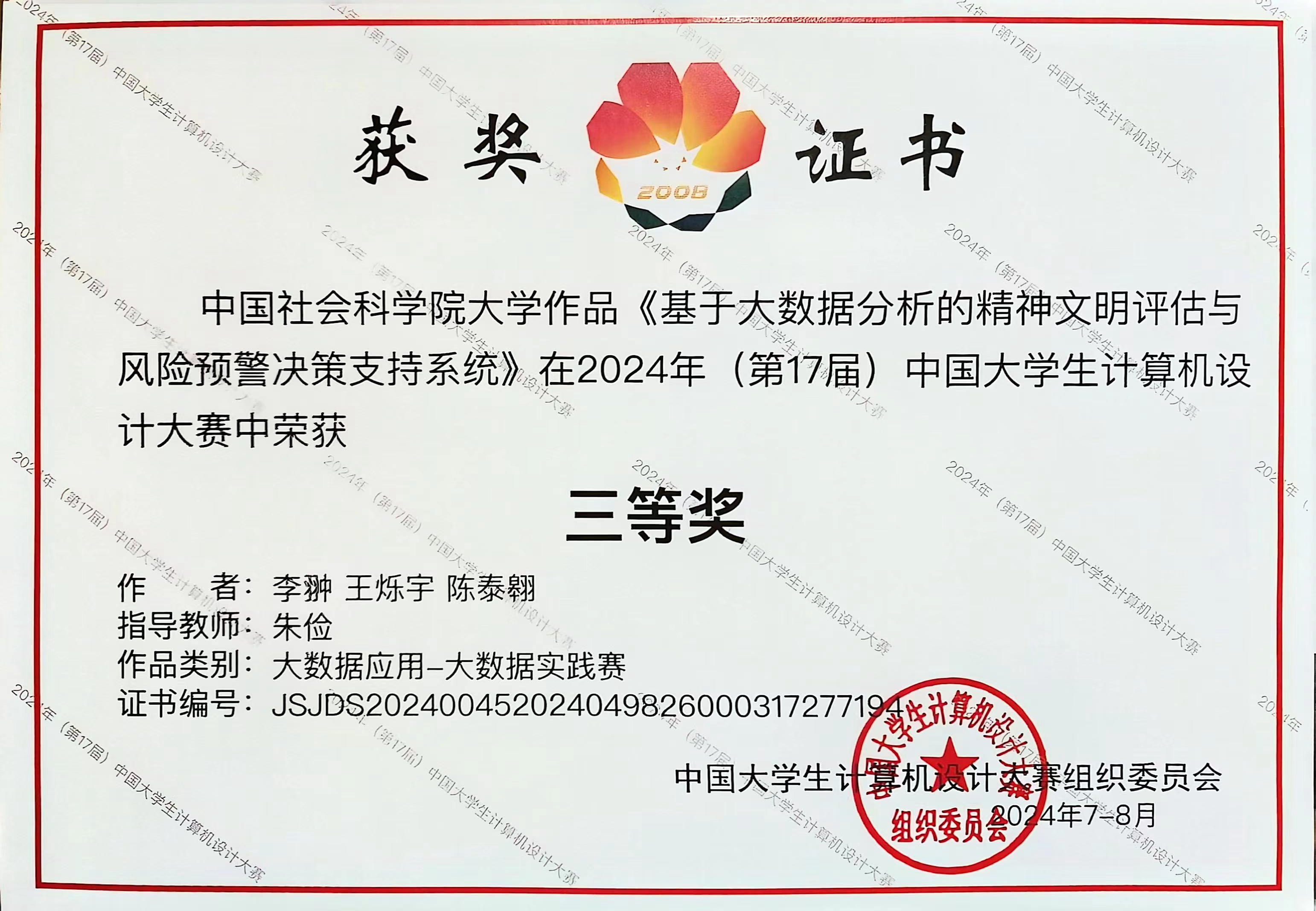 教学质量和学生实力的又一次肯定。他们的作品《大数据分析在精神文明评估与风险预警决策支持系统中的应用》展现了卓越的研究实力和创新能力。