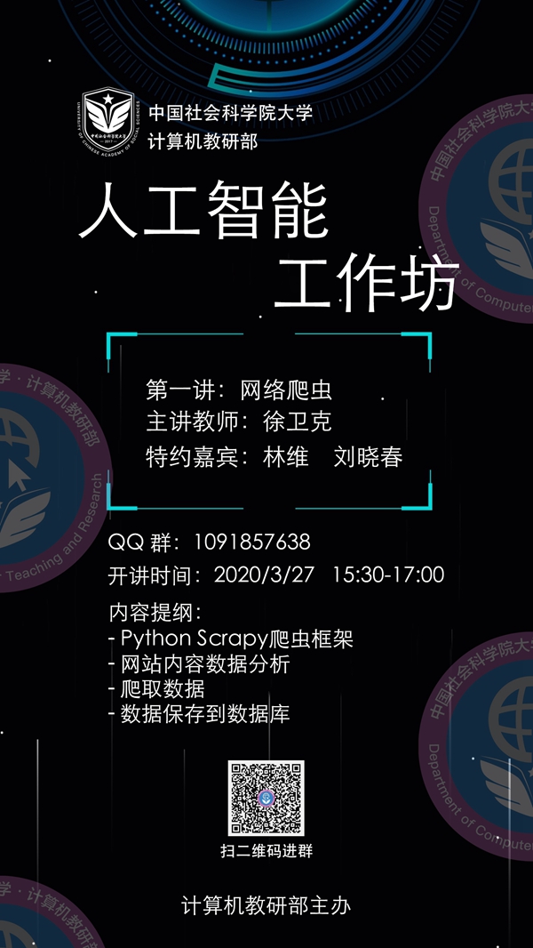 人工智能与人文社会科学相关研究领域进一步融合。本期工作坊主要内容包括网络爬虫、文本分析、机器学习、区块链技术、图像识别等等。